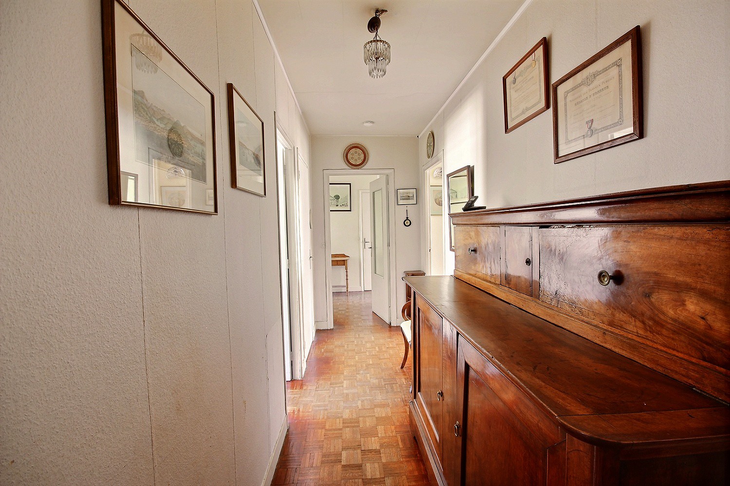 Entre la gare et le centre-ville, situé au quatrième étage avec ascenseur d'un immeuble de bon standing appartement 5 pièces traversant, lumineux d'environ 93 m² vous offrant une entrée, un séjour spacieux (possibilité d'une 4ème chambre) donnant sur un balcon, une cuisine séparée avec cellier, 3 chambres (13, 12 et 12 m²). Parquet, double-vitrage, chauffage collectif au gaz (chaudière récente). Une grande cave et un garage fermé en sous-sol complètent ce bien. Proximité tout commerce, parc Maison Blanche. Gare SNCF à 800 m, bus 189. Sectorisation scolaire : maternelle et élementaires Moulin de Pierre. Collège Maison Blanche. Des travaux de modernisation sont à prévoir. Honoraires à charge acquéreur inclus dans le prix de vente : 3,7 % TTC (Prix 520 000 euros hors honoraires). Copropriété de 39 lots principaux. Charges courantes de copropriété : 3 450 euros par an (chauffage, eau froide, eau chaude inclus) - pas de procédure en cours.